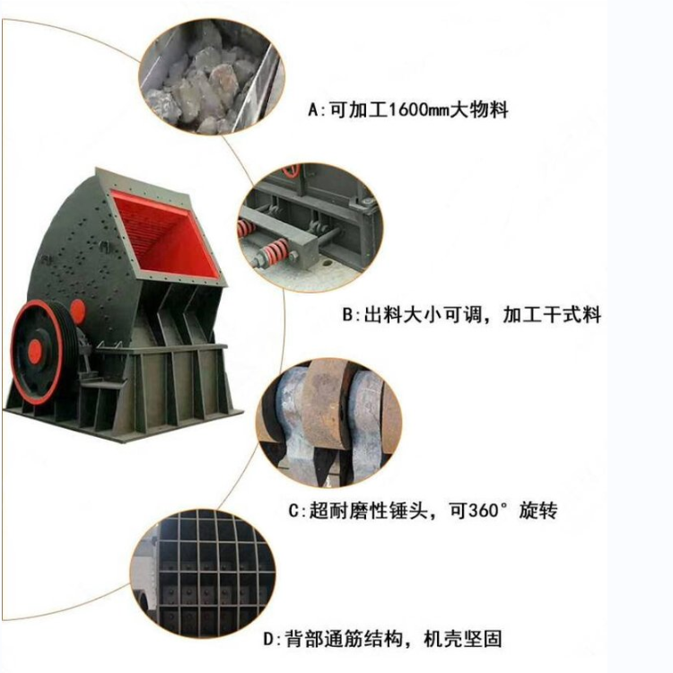 重錘式破碎機是凱龍環保機械設備研發的投資少、效率好的碎石生產設備,該機融合了傳統單段錘式破碎機和反擊式破碎機的特點,特別適用于破碎中等硬度石灰石,抗壓強度≤200MPa,以及含鈣量≥40%的石料?蓪崿F一機多用,即可用于一破,可實現一回成型,也可用于二破(二破可選用改型的專用反擊破碎機得到好的顆粒形狀),降低30~40%的投資成本。同時這種機型具有產量高、耗能少、成本低。